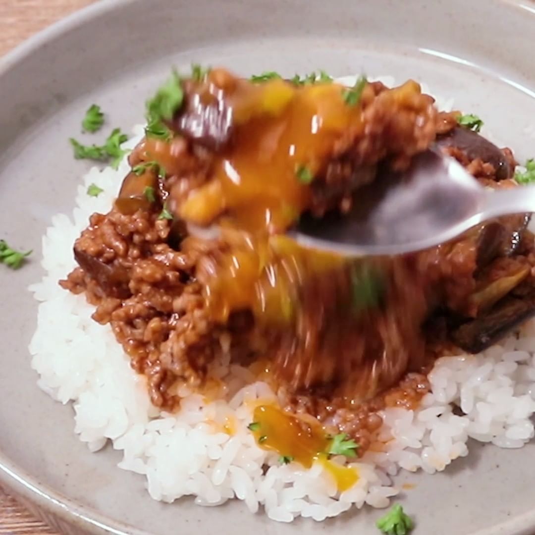 ④ナスのミートソース丼