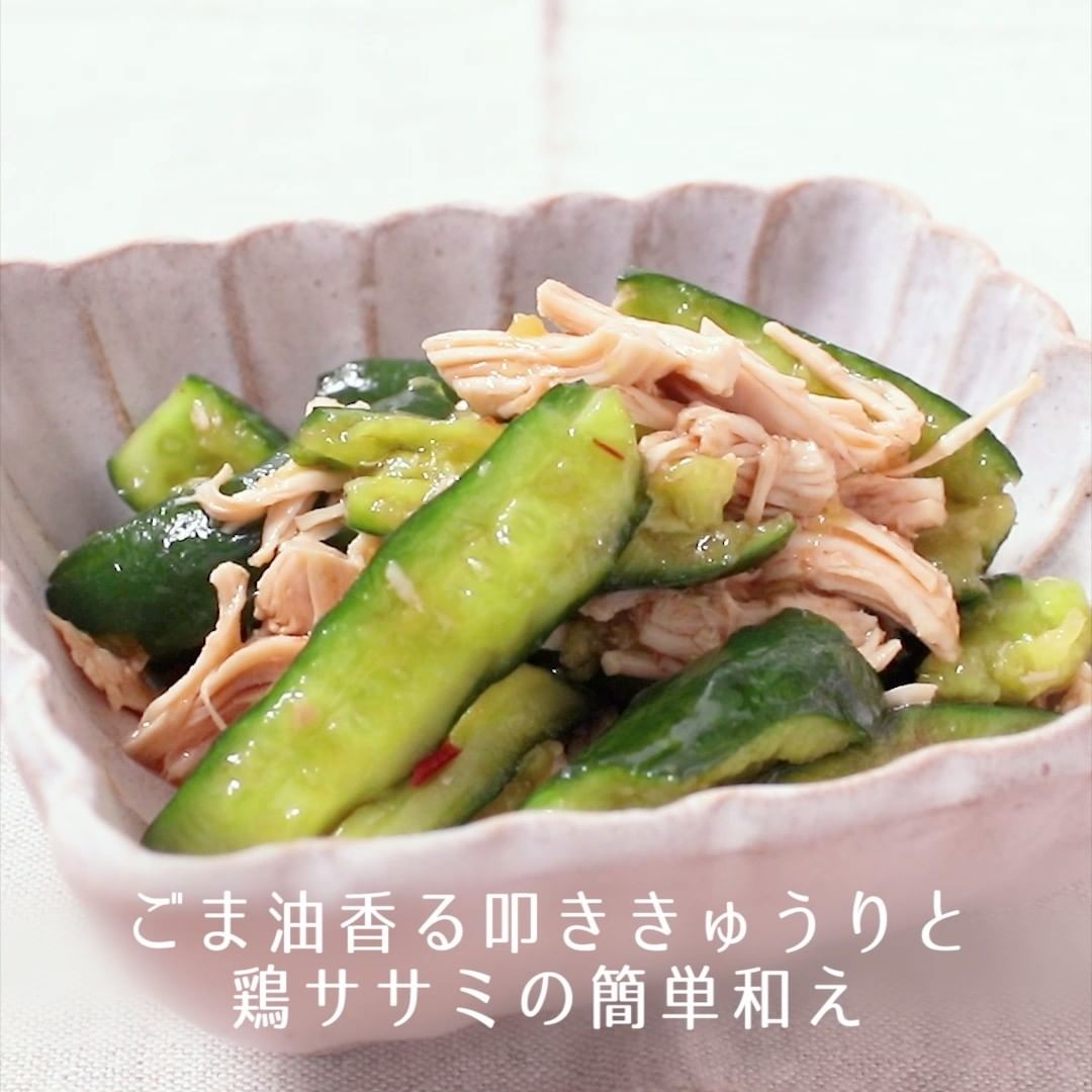 ①ごま油香る 叩ききゅうりと鶏ササミの簡単和え