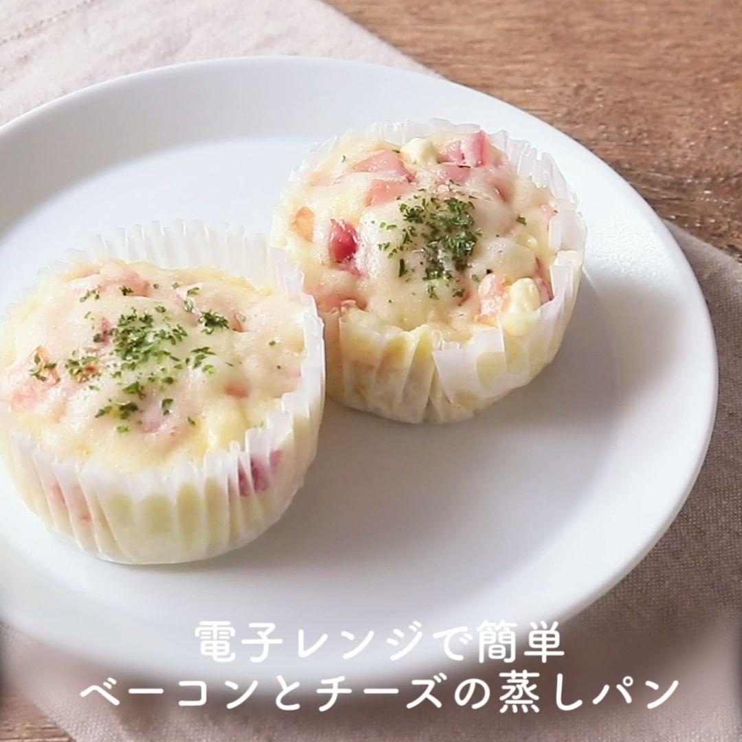 ②電子レンジで簡単 ベーコンとチーズの蒸しパン