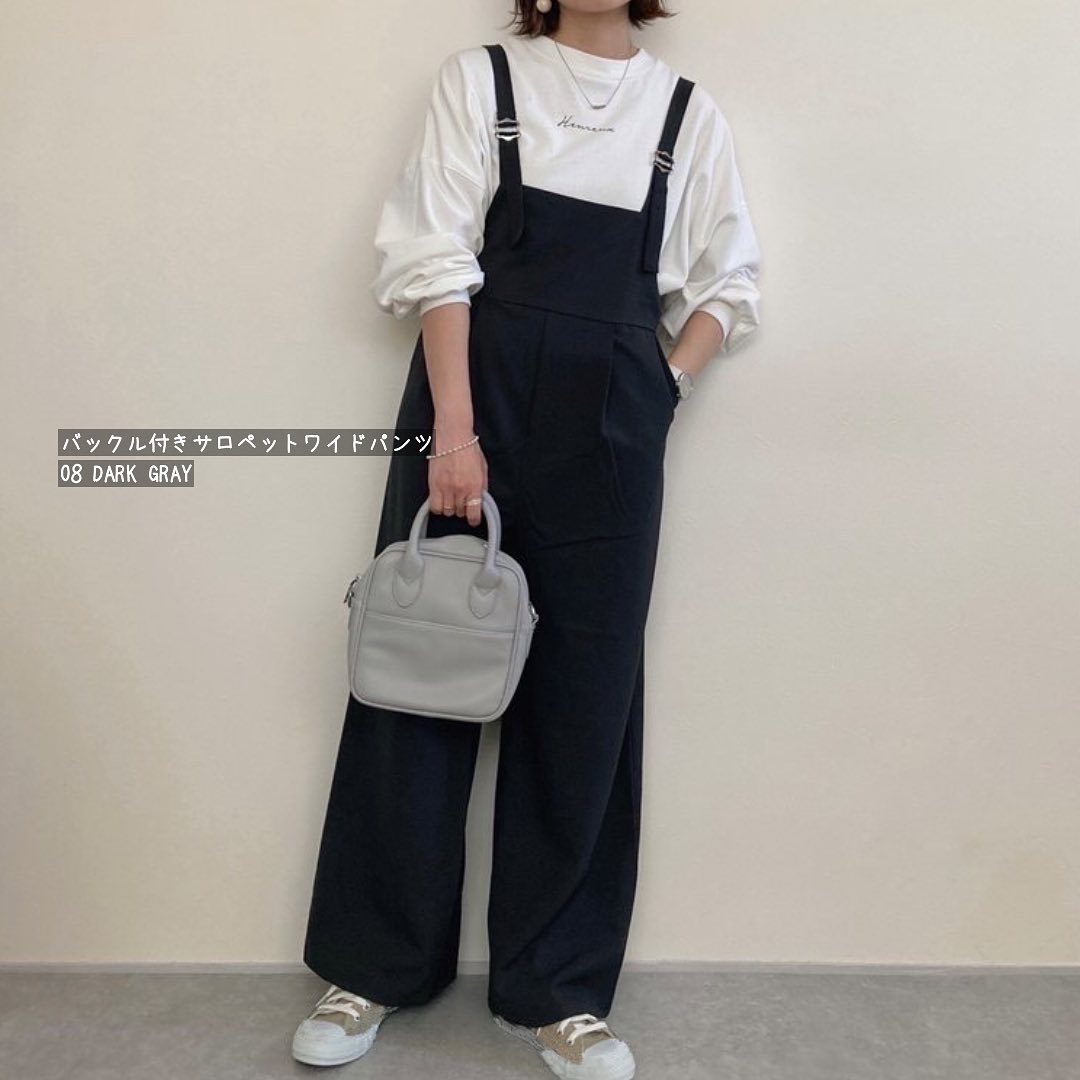 トレンド感度高めの、バックル付きサロペットワイドパンツ✨ストラップ部分のバックルデザインがアクセントになっていて、お洒落見え!長さの調節も可能で、合わせやすい👌ゆるっと着こなせるワイドシルエットが、こなれ感たっぷり💕ノースリーブやTシャツで、大人っぽく着るのも良し👌ボリューム袖でフェミニンに着こなすのも◎スタイリングしやすい、楽ちん&お洒落アイテム✌️是非、チェックしてみてくださいね😊