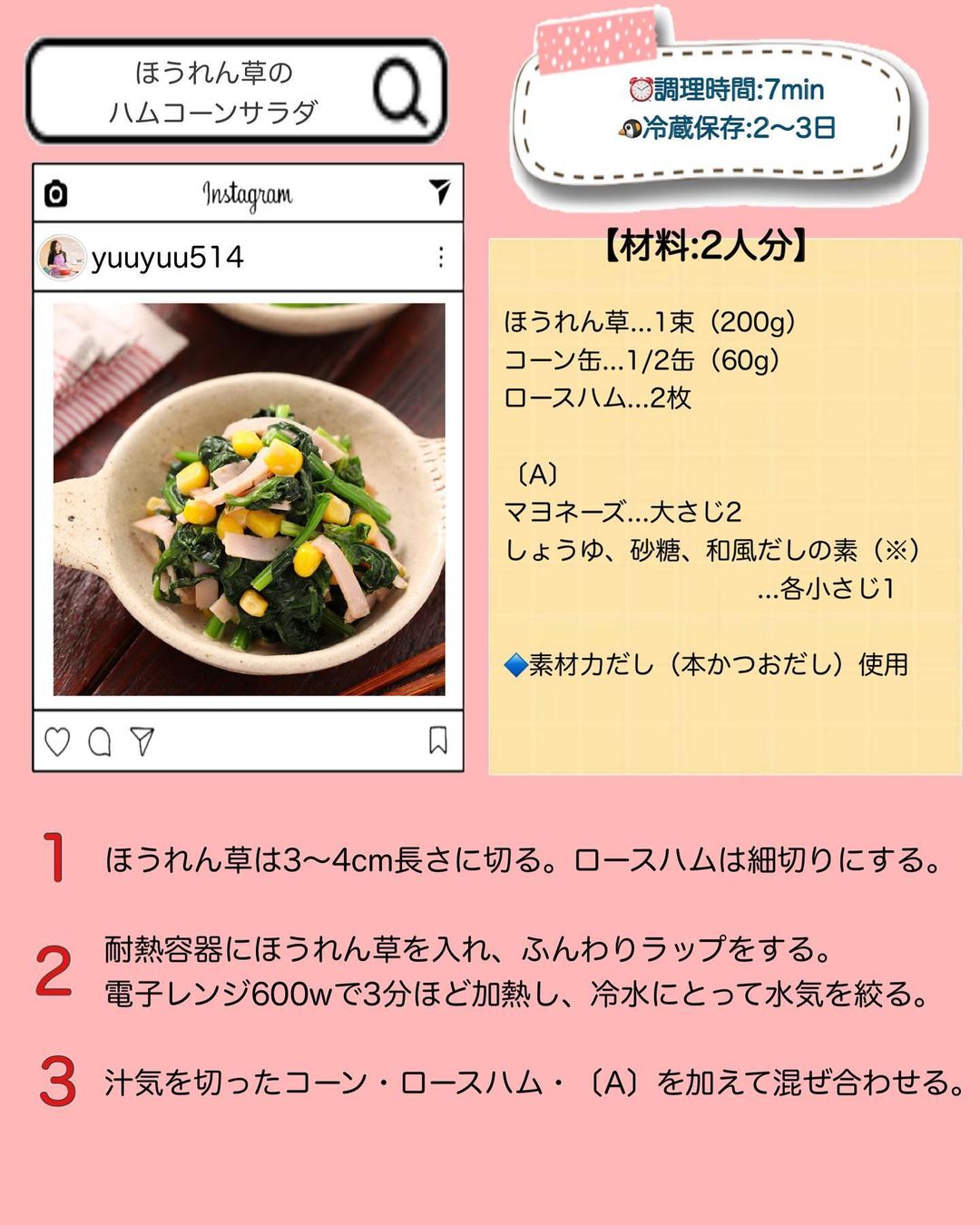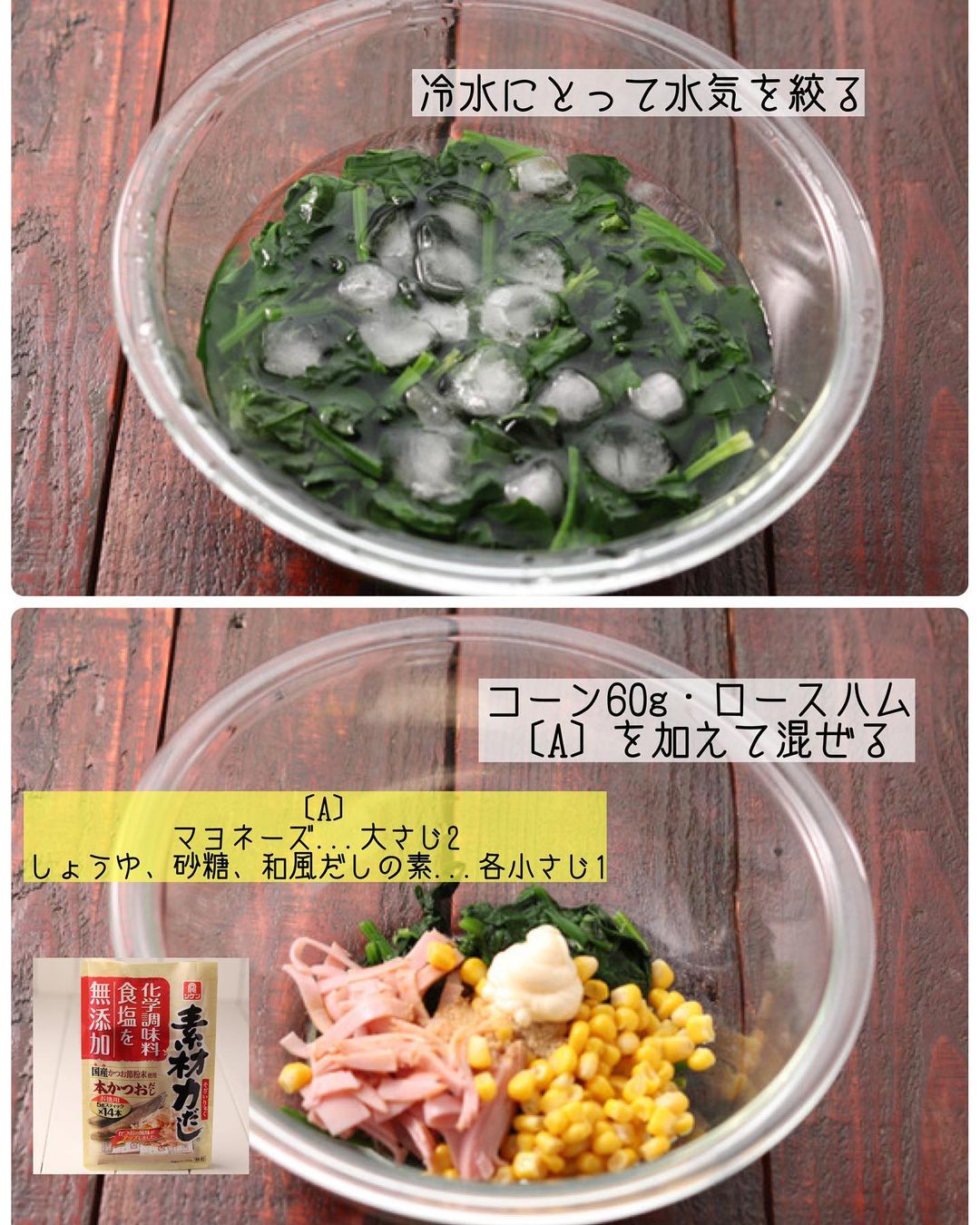 𓎩 #ほうれん草のハムコーンサラダ