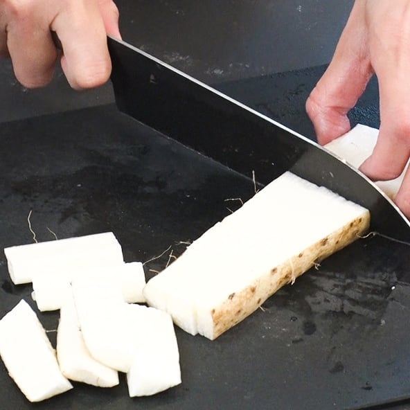 ①長芋300gを長さ約5cm、1.5cm角に切る