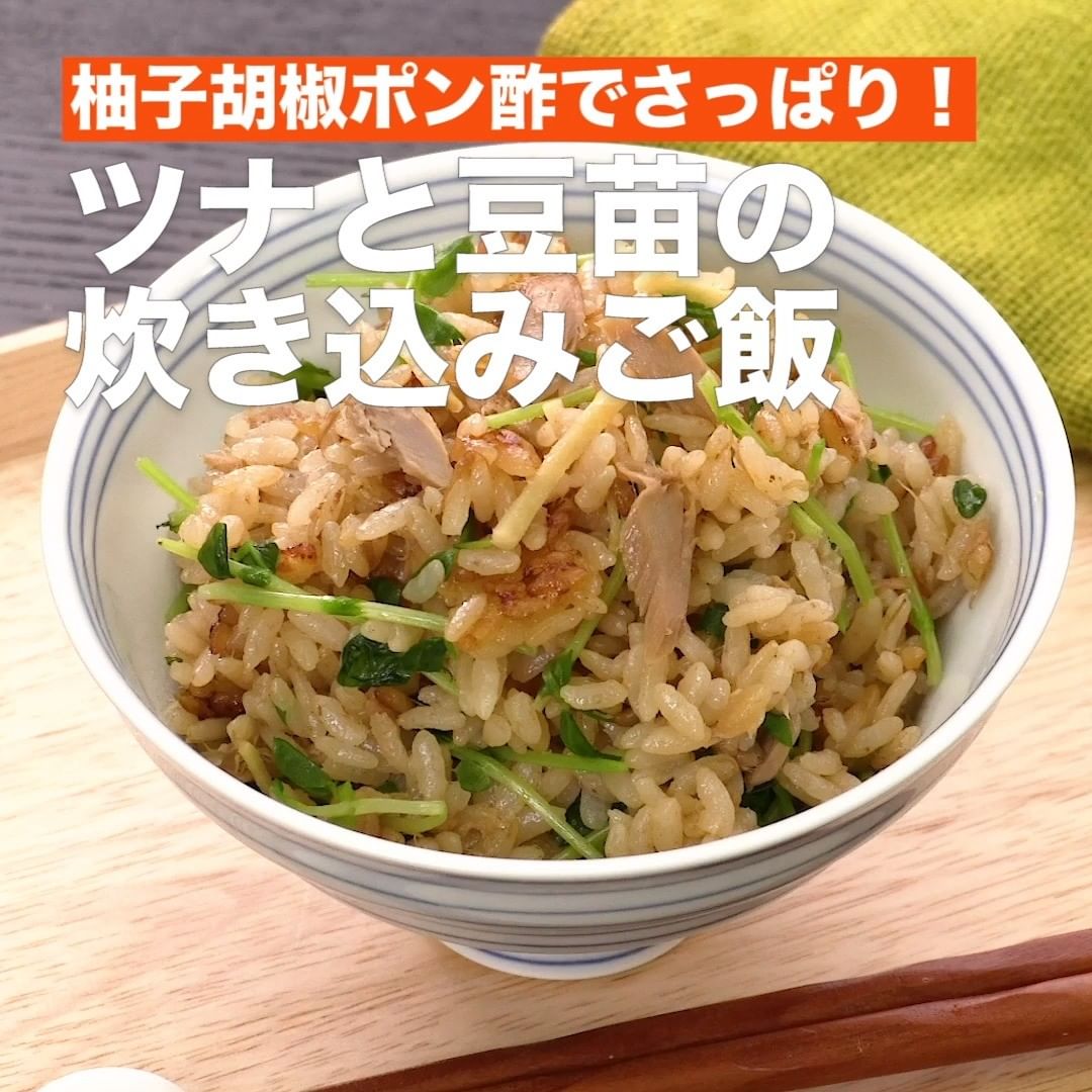⑦<柚子胡椒ポン酢でさっぱり!ツナと豆苗の炊き込みご飯>