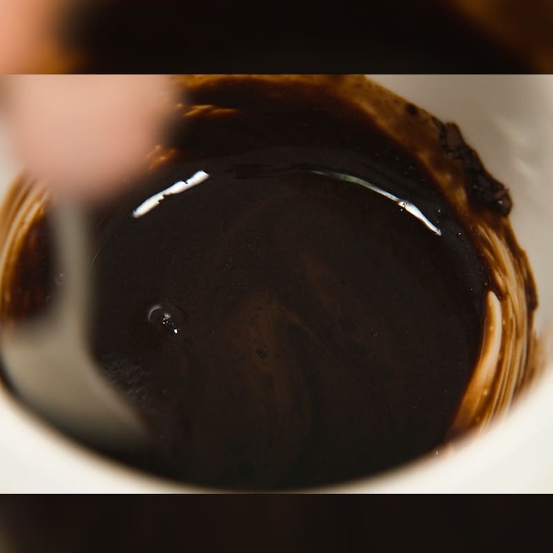 ②お湯を注ぐ前にティースプーン1杯の水を加えて混ぜる