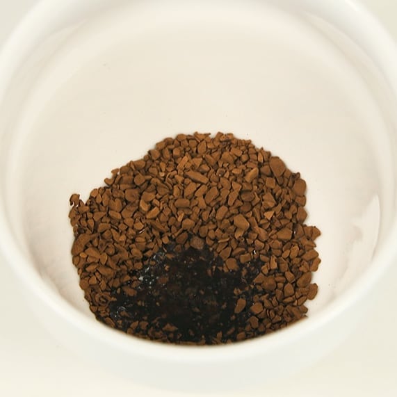 ①カップにインスタントコーヒーを2g入れる