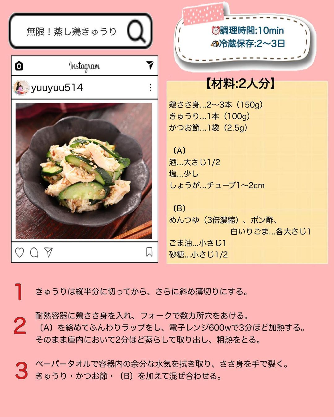 𓎩 #無限蒸し鶏きゅうり