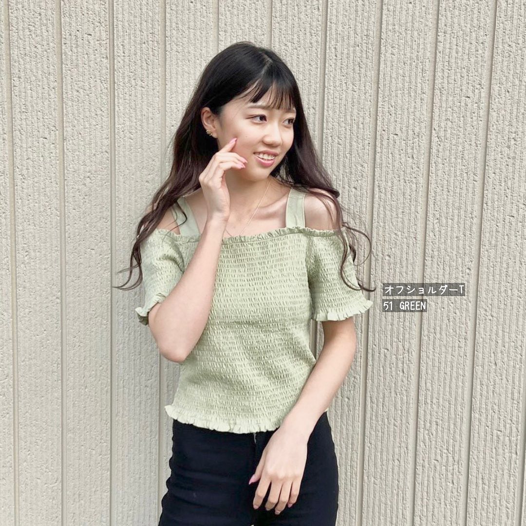 映えのトップス、ここにあり✨全体にシャーリングを施した、ヘルシーな肌みせがCUTEなオフショルダーT😘身体にフィットする、スッキリとしたシルエットだから🌟可愛い雰囲気に着こなせてGOOD💕デコルテもキレイ見え👍ボトムスの合わせ方で、雰囲気も変わるから◎ヘビロテなアイテムになりそうですね🙌是非、チェックしてみてくださいね💁♀️💕