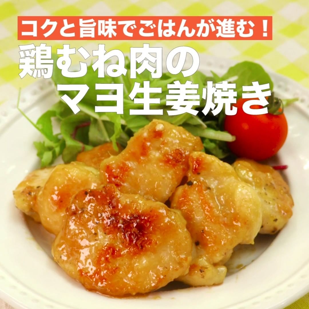 ④<コクと旨味でご飯が進む!鶏むね肉のマヨ生姜焼き>