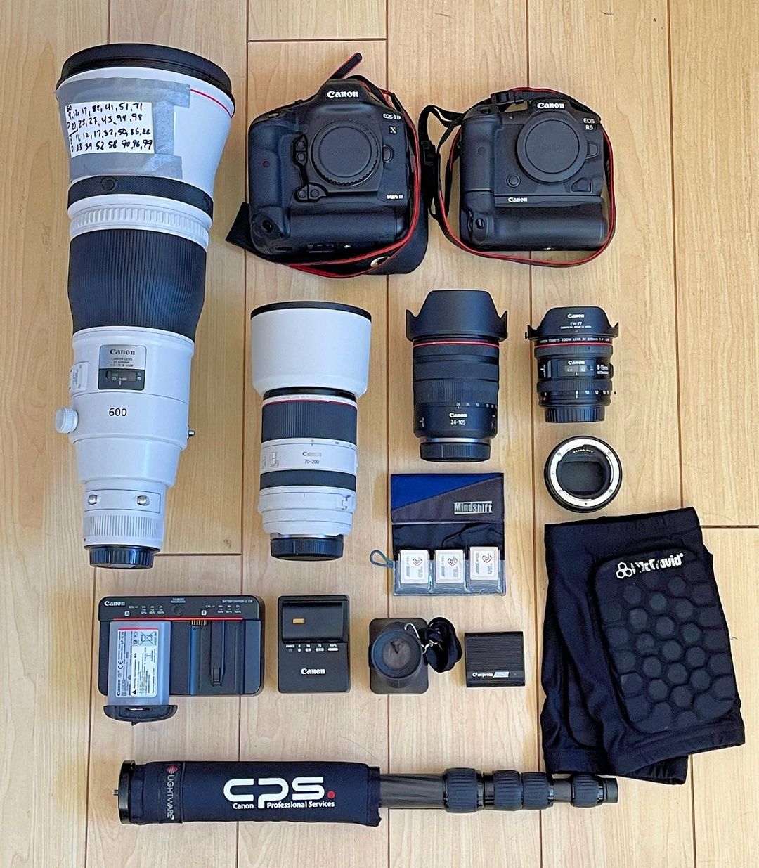 “This is my current kit for sporting events: The Canon EOS-1D X Mark III is my workhorse camera for sports. I think the AF, high ISO performance and frame rate make it the best sports action camera available today. The Canon EOS R5 is also a great action camera, and its size and weight along with fantastic AF make it an ideal second body.