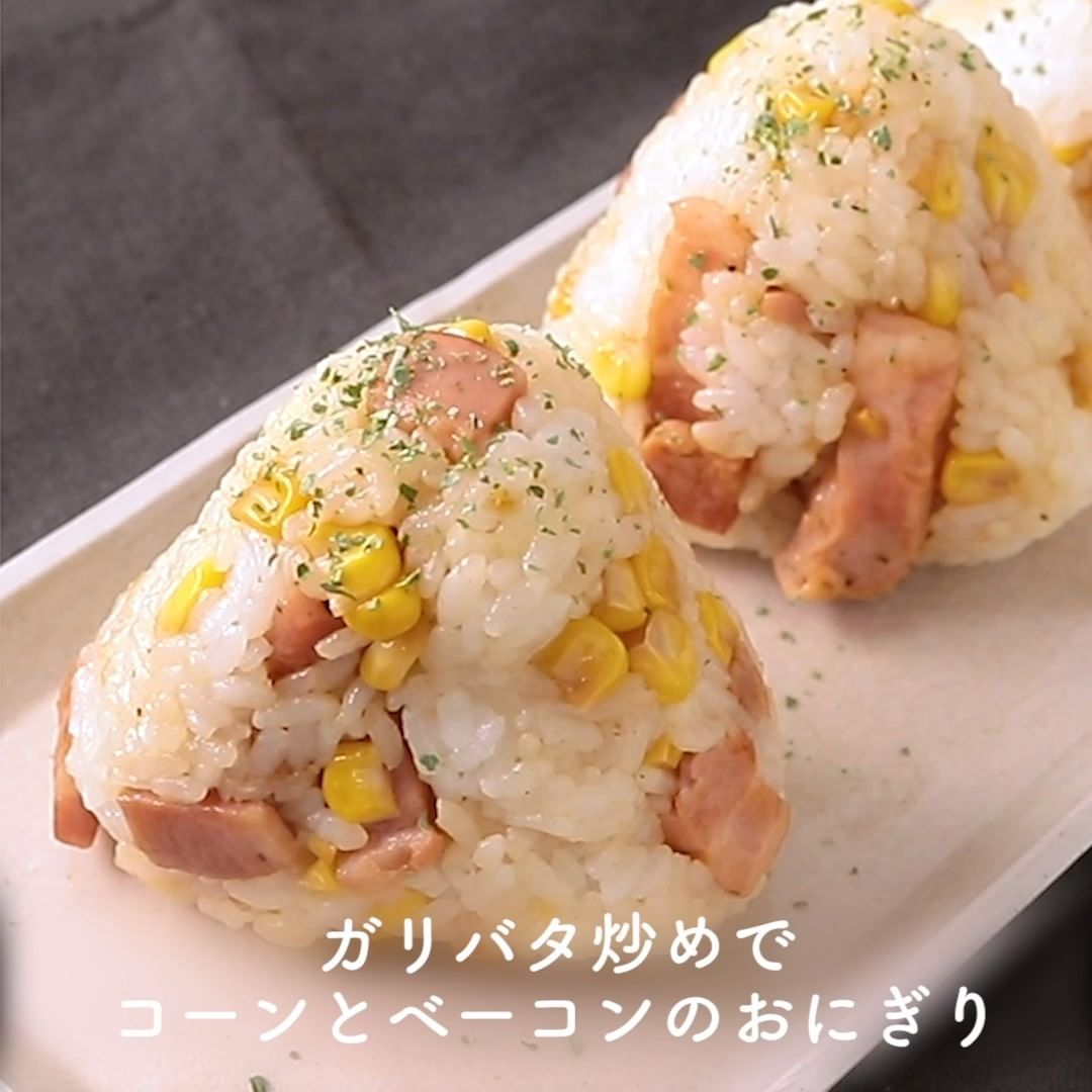 ④ガリバタ炒めで コーンとベーコンのおにぎり