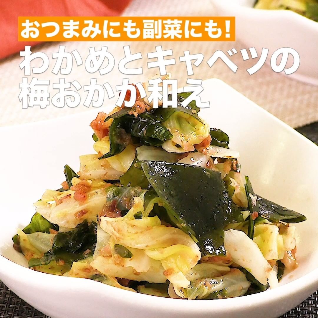 ⑧<おつまみにも副菜にも!わかめとキャベツの梅おかか和え>