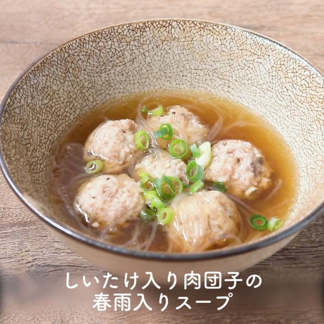 ⑦しいたけ入り肉団子の春雨入りスープ