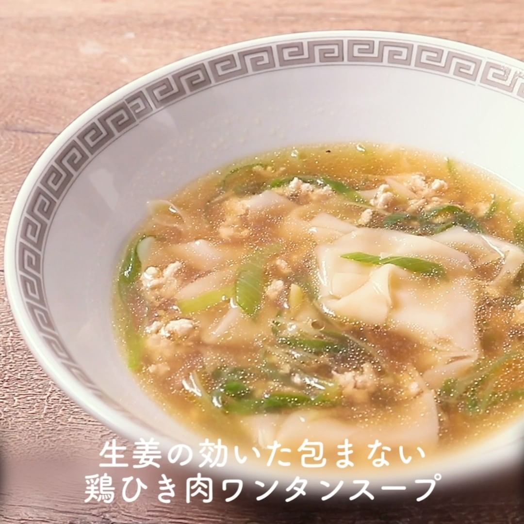 ②生姜の効いた包まない鶏ひき肉ワンタンスープ