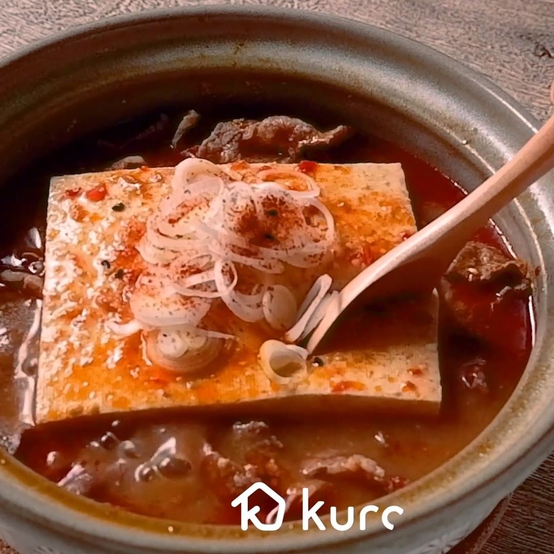 ①牛と豆腐の辛味噌煮込み