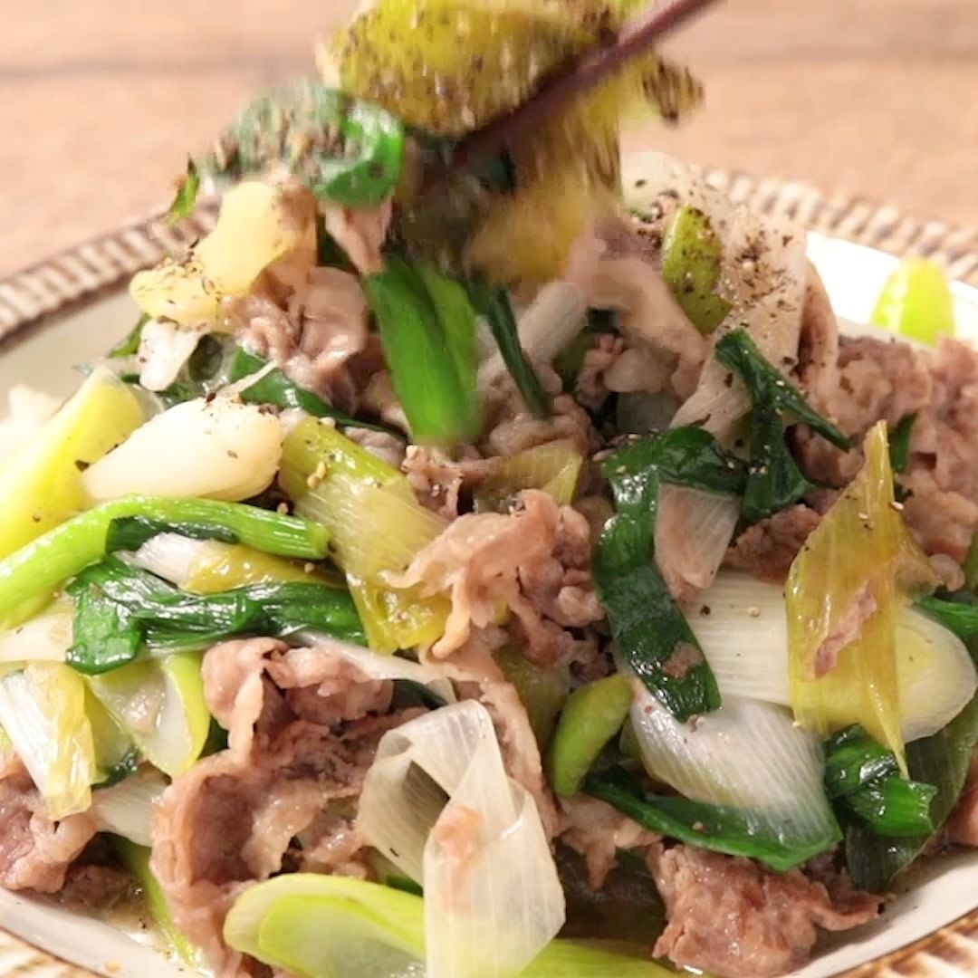 ⑤たっぷり長ねぎと牛肉の旨塩炒め