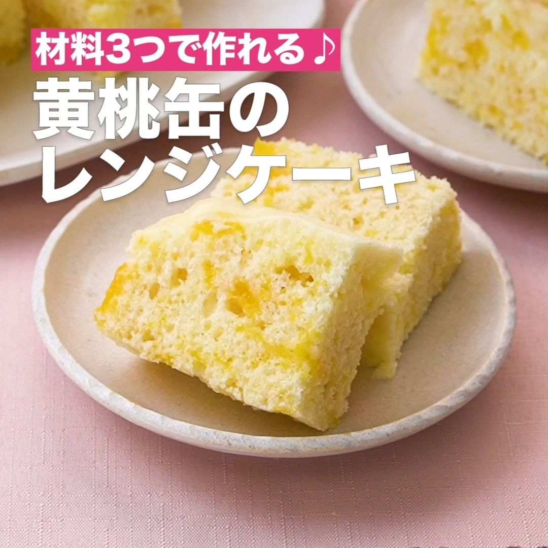 ③<材料3つで作れる♪黄桃缶のレンジケーキ>