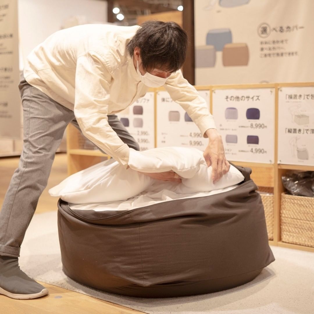 たっぷり詰まった微粒子ビーズが、どんな体勢にもフィットしてくれる『体にフィットするソファ』。
