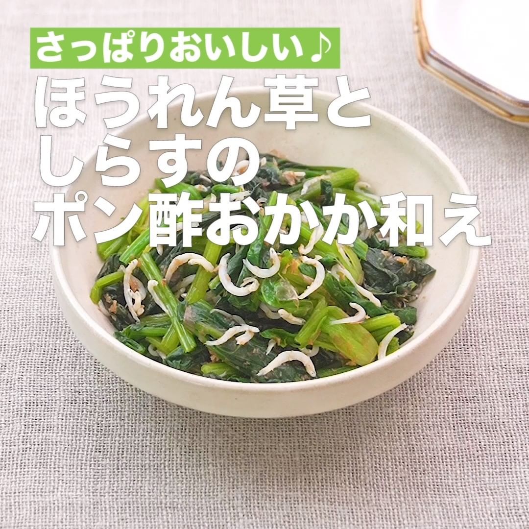 ⑧<さっぱりおいしい♪ほうれん草としらすのポン酢おかか和え>