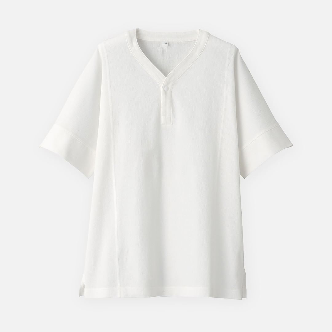 凹凸のある生地は吸放湿性にすぐれ、高温多湿な気候に適した素材で、シャツとパンツをつくりました。