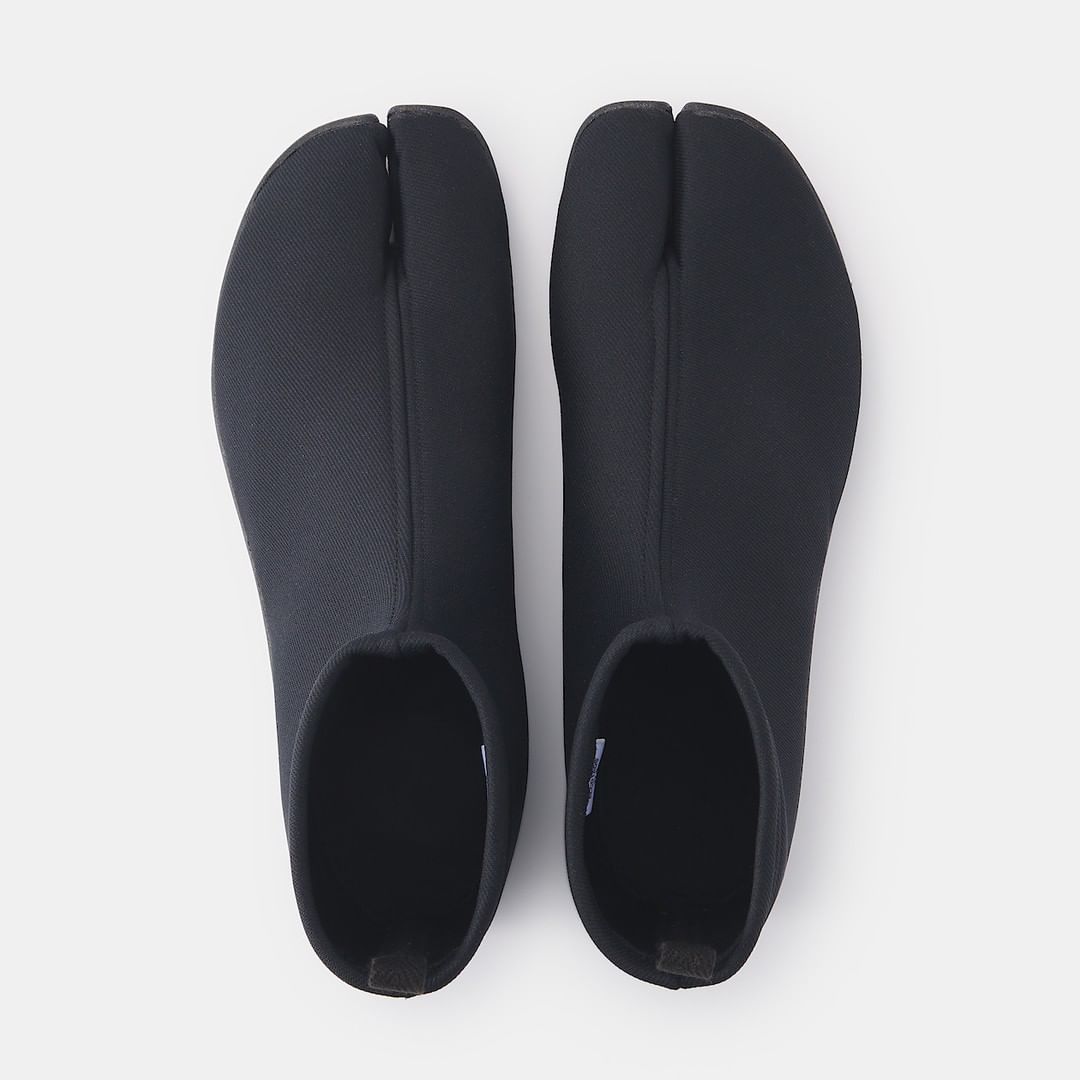 この地下足袋に現代の素材を合わせて、着脱しやすい足なり直角 じかたびスニーカーをつくりました。