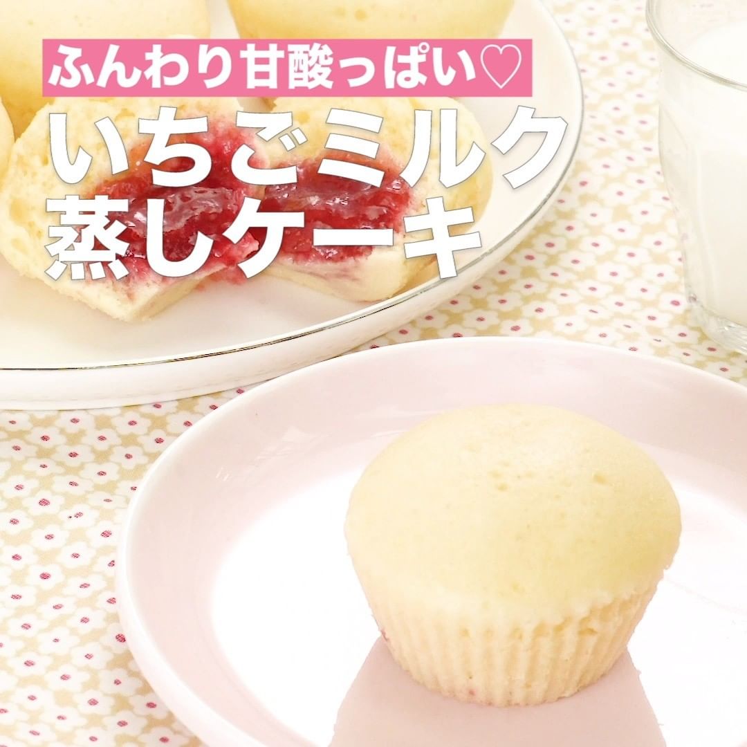 ⑤<ふんわり甘酸っぱい♡いちごミルク蒸しケーキ>