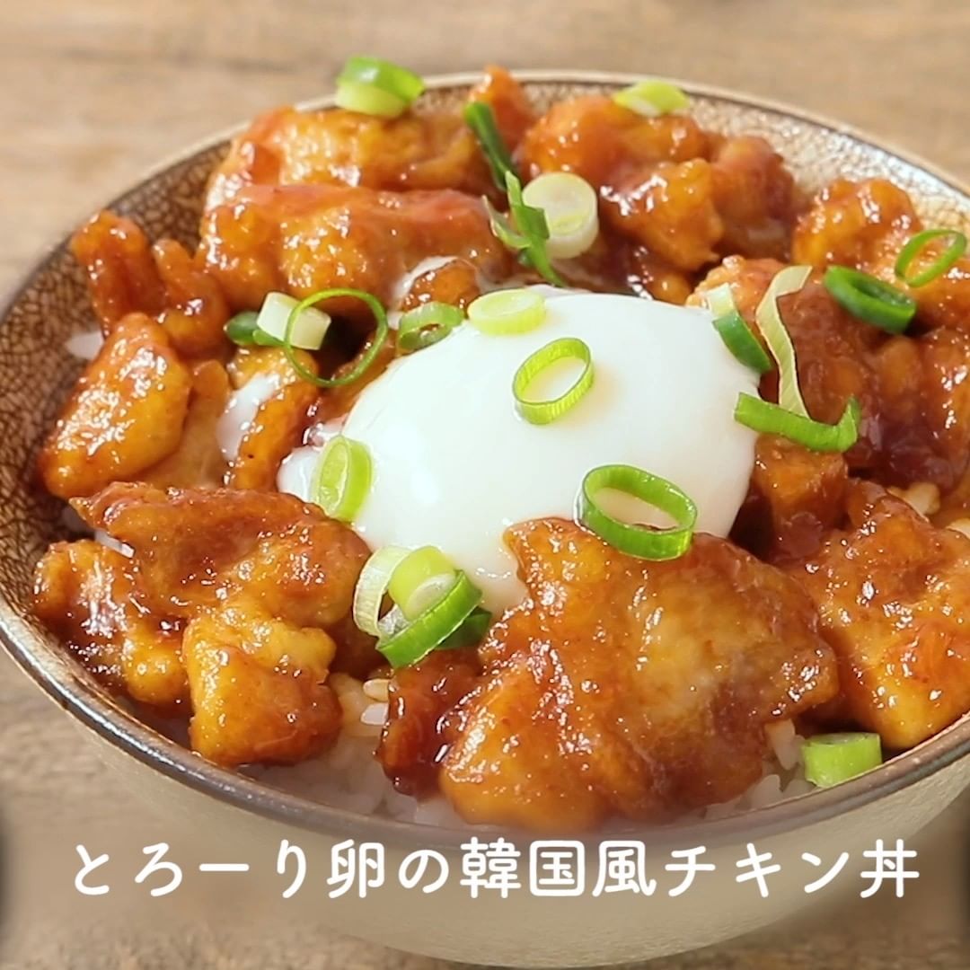 ①とろーり卵の韓国風チキン丼