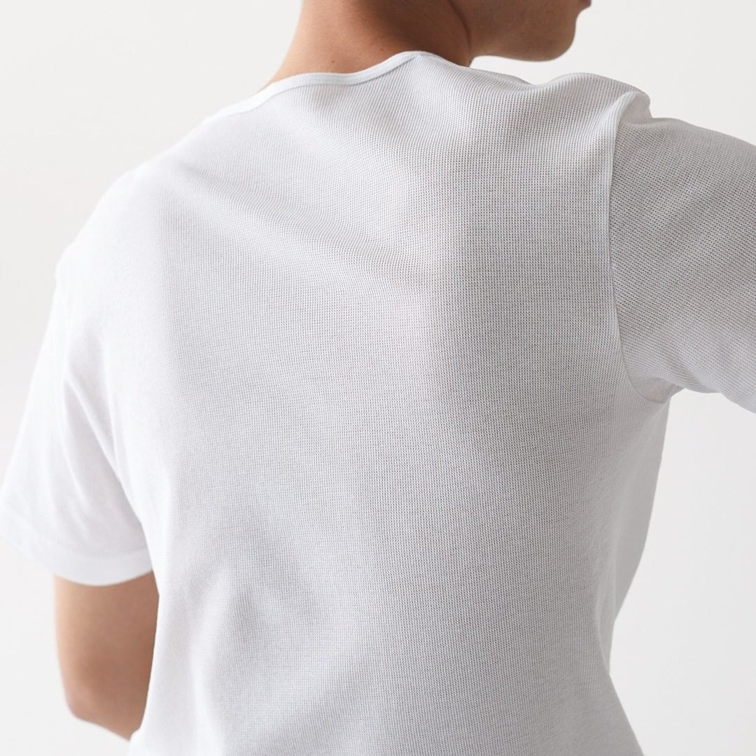 衣服内の湿気を素早く吸放出する特殊な綿糸で編み立てているので、汗をかいても蒸れにくく、夏でも涼しく快適に着られます。