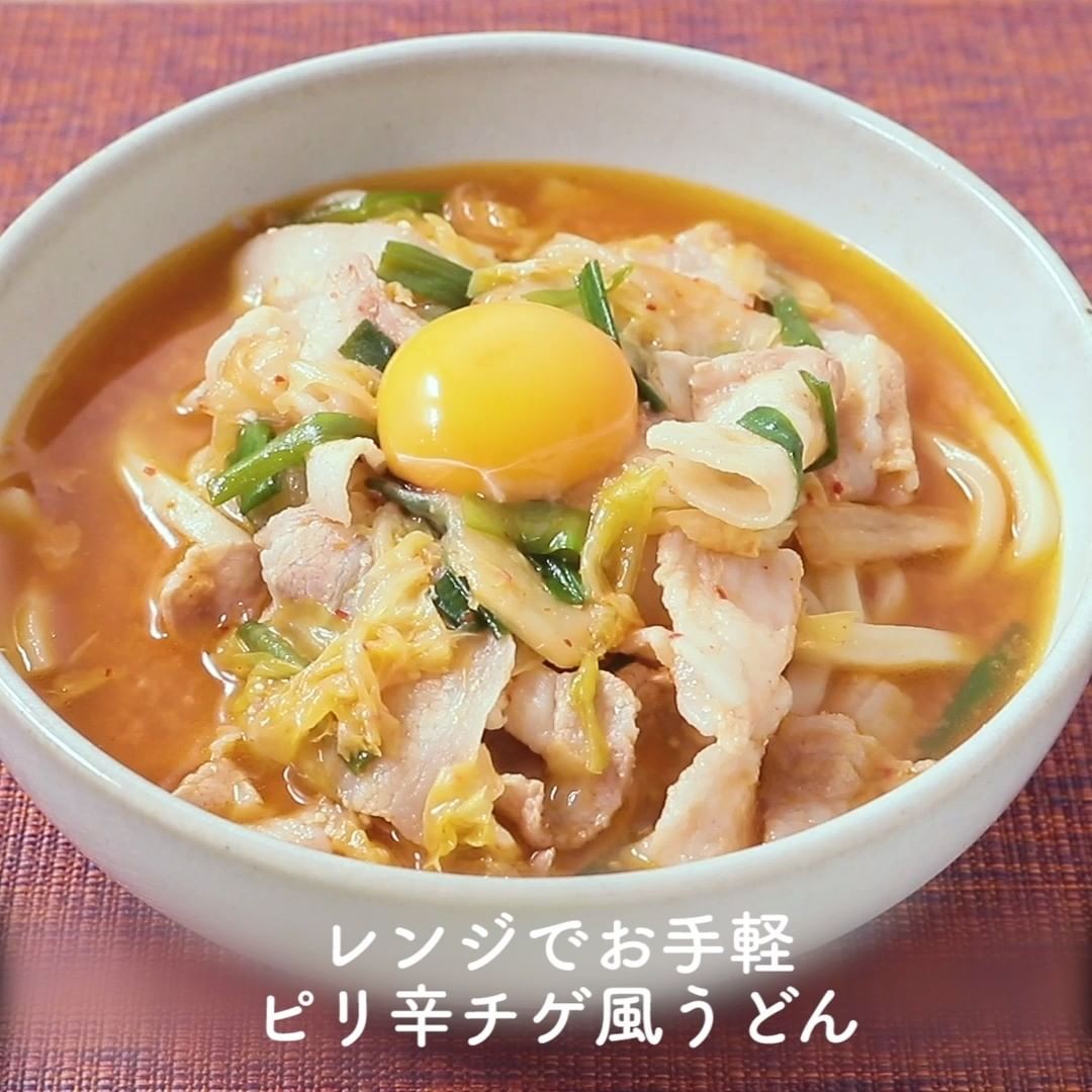 ⑤レンジでお手軽 ピリ辛チゲ風うどん