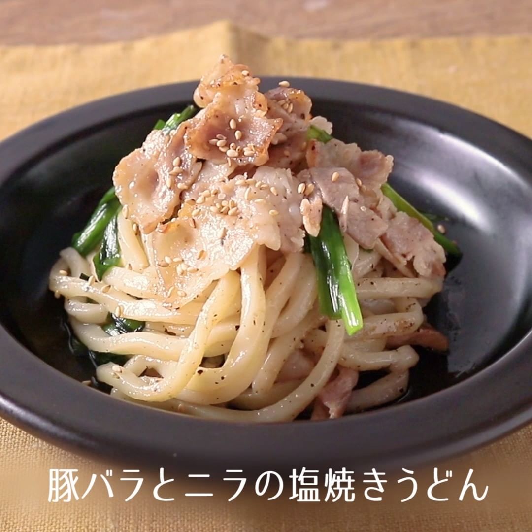 ③豚バラとニラの塩焼きうどん