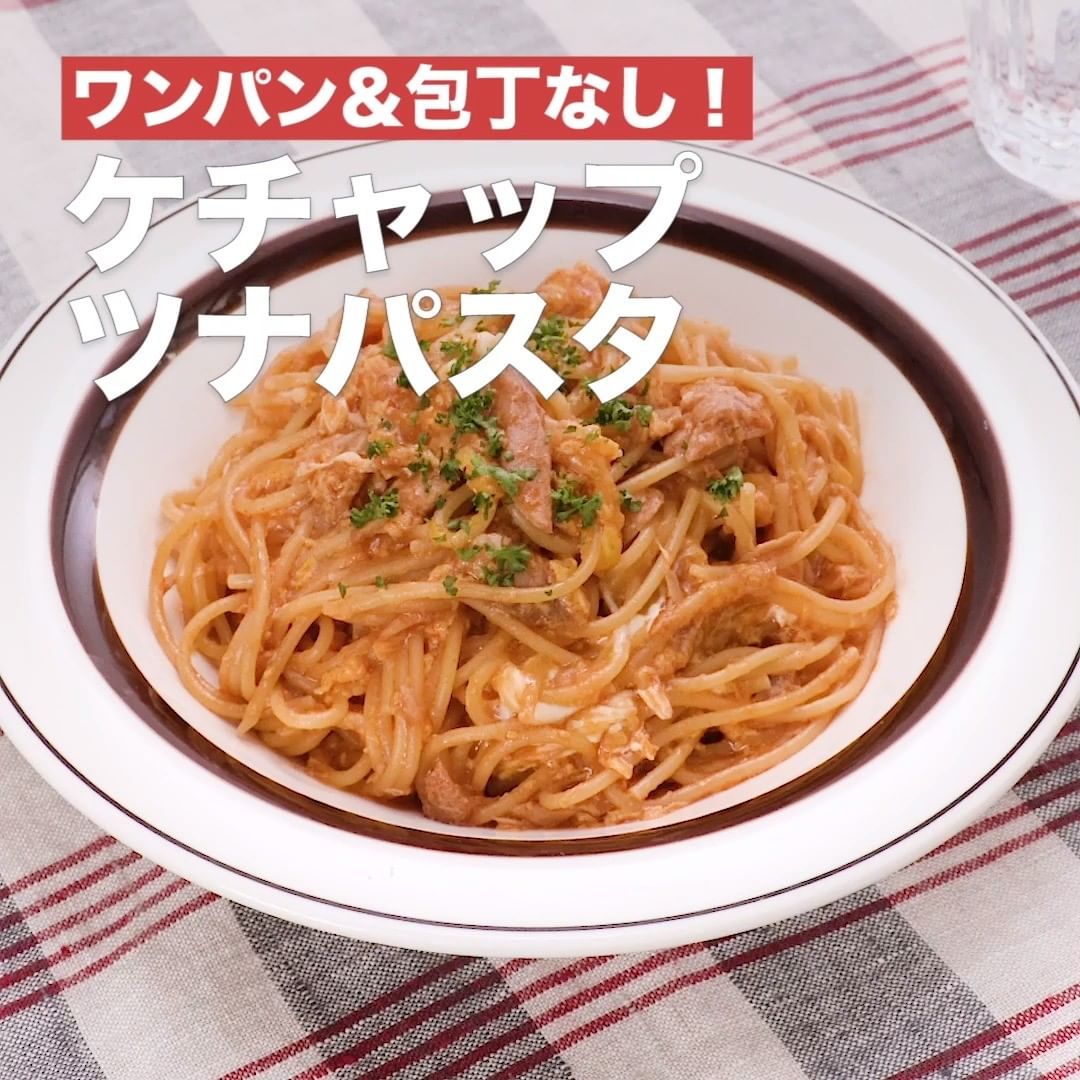 ⑥<ワンパン&包丁なし!ケチャップツナパスタ>