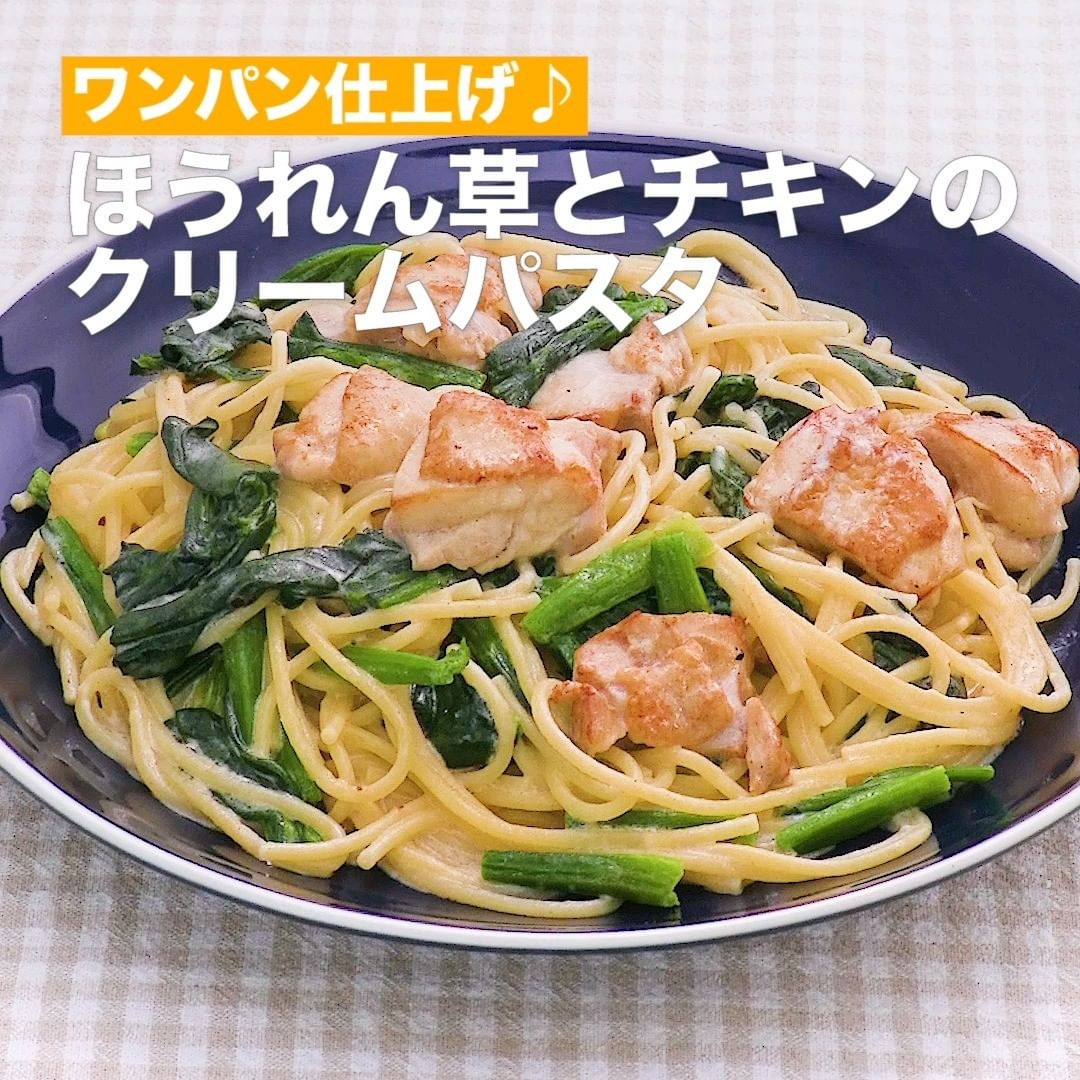 ②<ワンパン仕上げ♪ほうれん草とチキンのクリームパスタ>