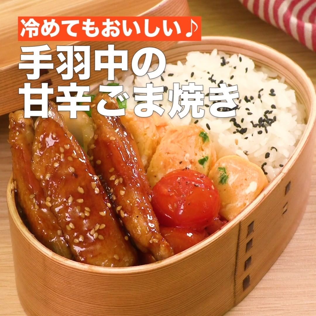 ③<冷めてもおいしい♪手羽中の甘辛ごま焼き>
