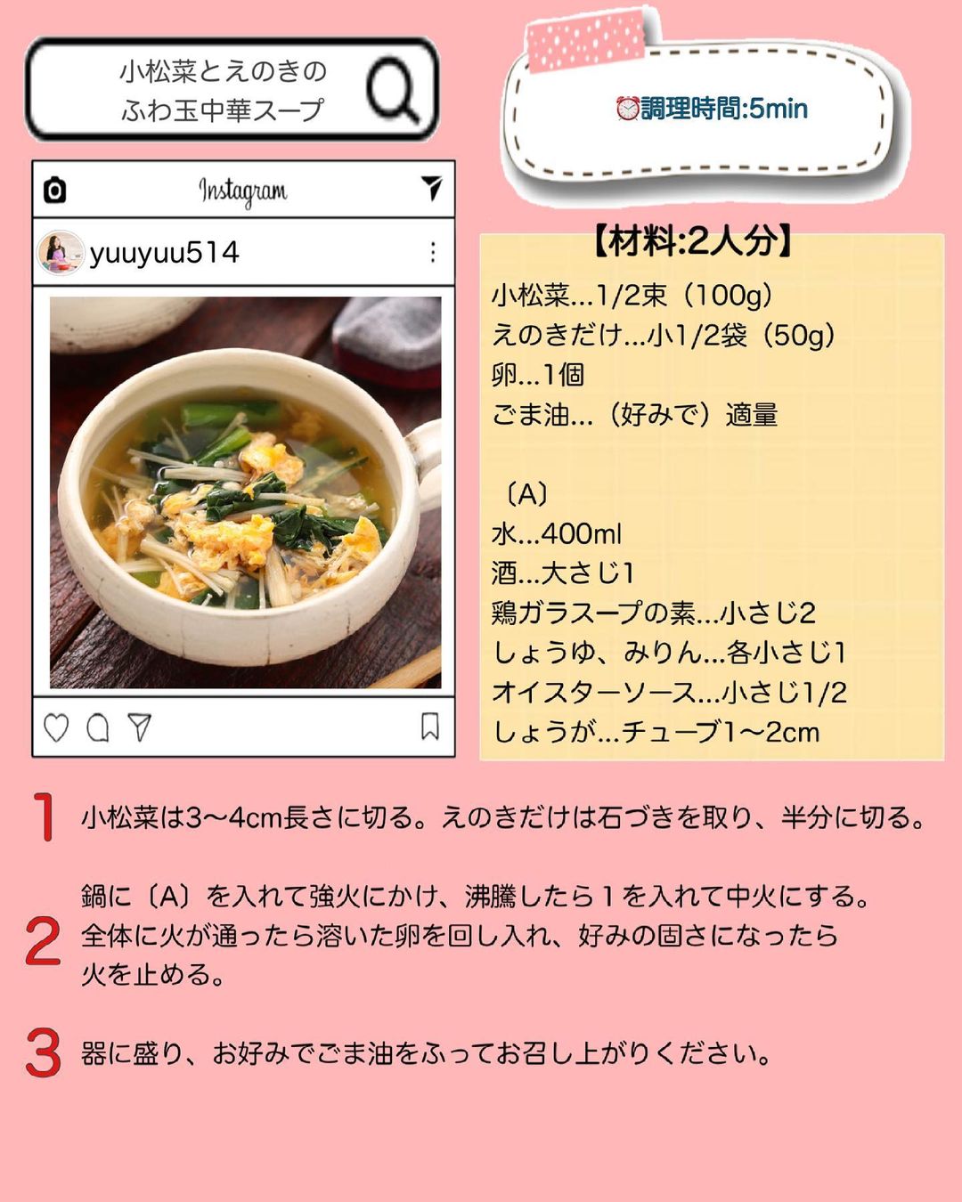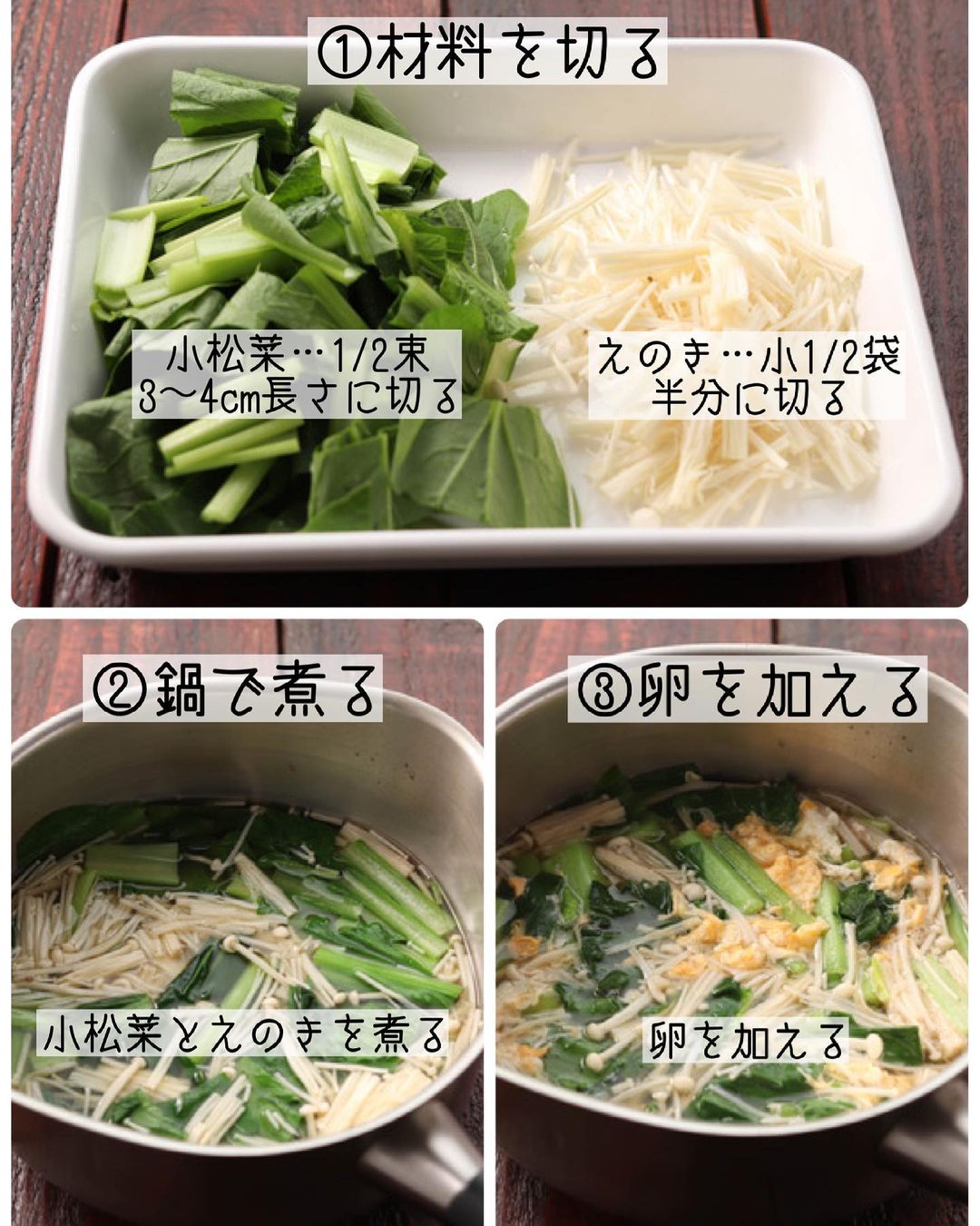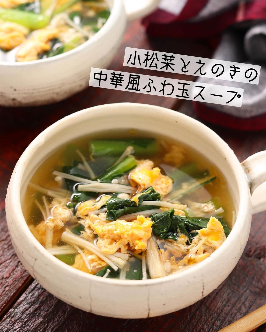 𓎩 #小松菜とえのきのふわ玉中華スープ