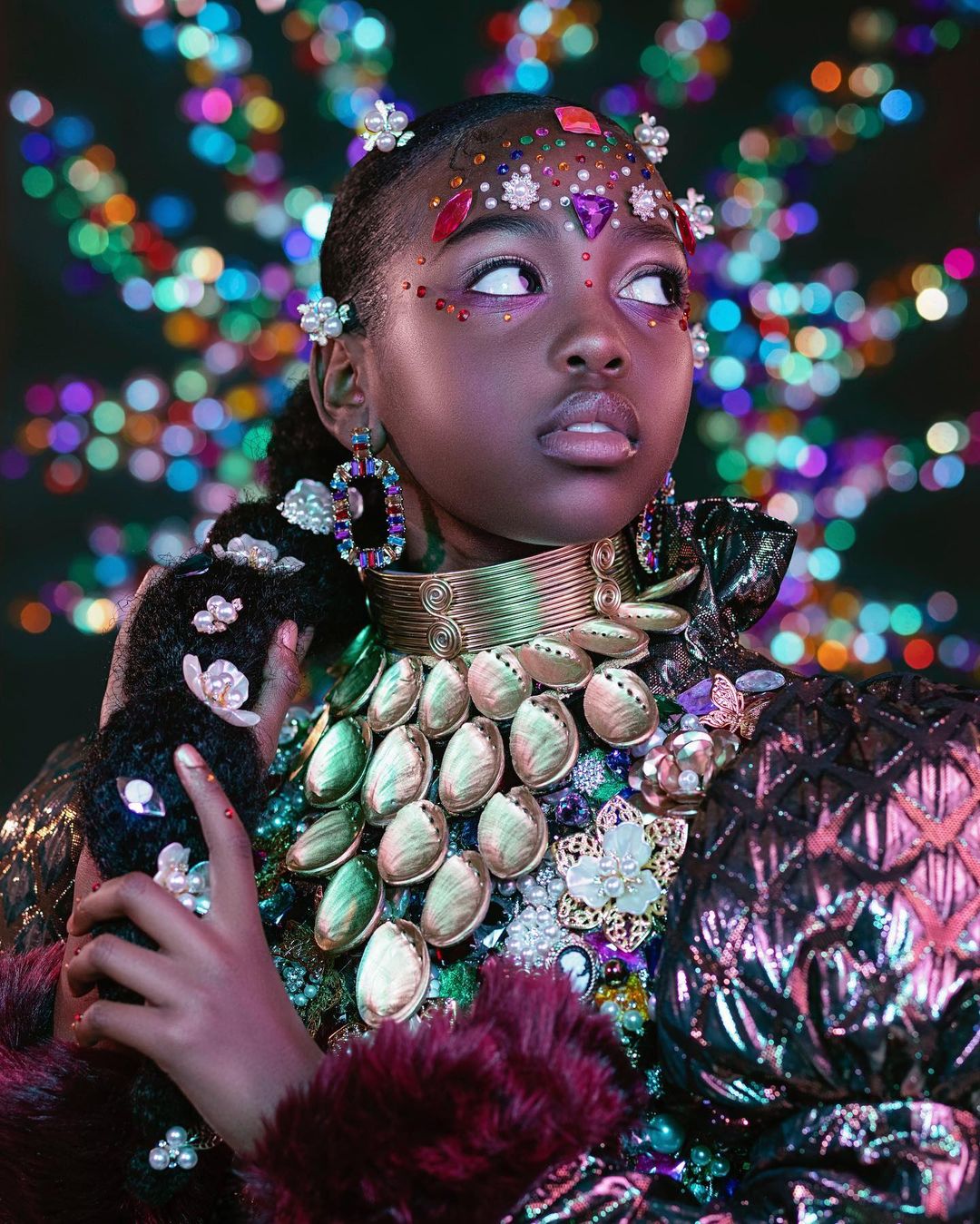 Photo by #CanonExplorerOfLight duo @creativesoulphoto: “For this image, we decided to create a colorful bokeh effect with the new RF100mm F2.8 L MACRO IS USM lens. We glued large colorful jewels onto a piece of black poster board for our background. We set our aperture at f3.5 so that we could still keep the subject sharp while blurring out the background. We enjoyed positioning our model into different poses against the background to figure out the best way to complement the background design.”