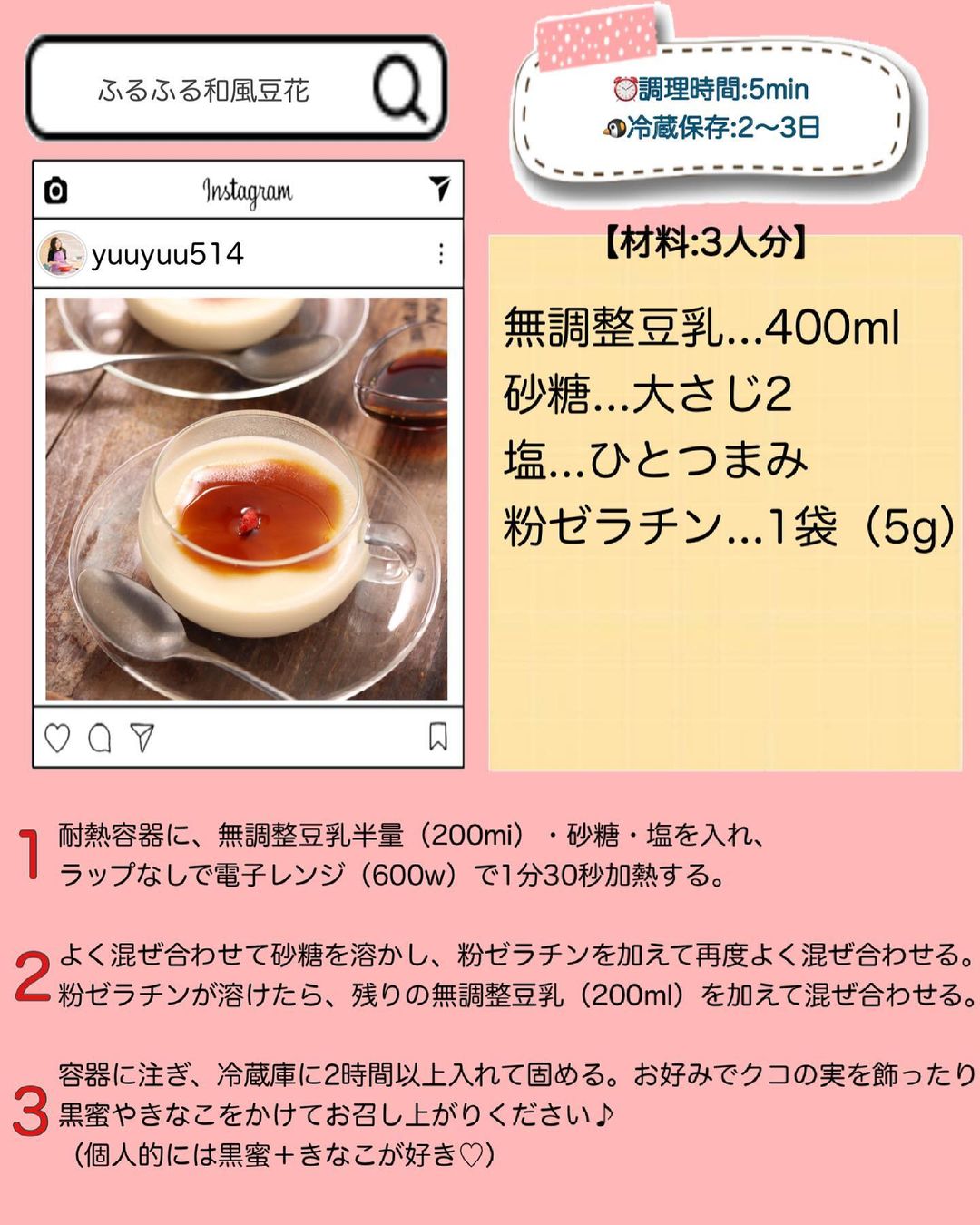 ⏰調理時間:5min+固める時間