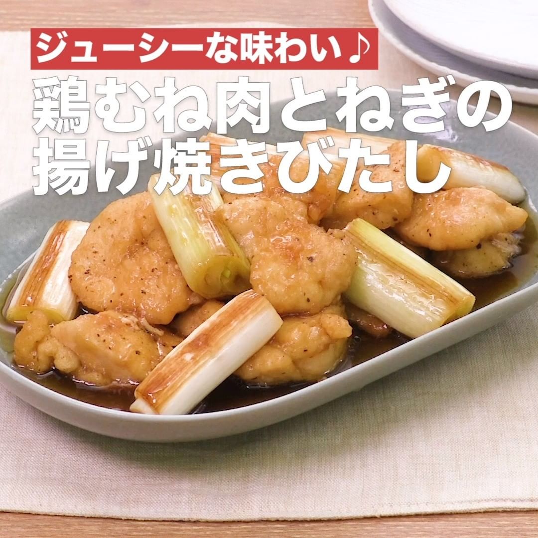 ⑧<ジューシーな味わい♪鶏むね肉とねぎの揚げ焼きびたし>