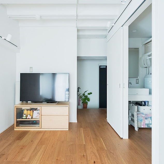 東京都三鷹市にあるマンションの一角にある、Nさんご一家のお宅は、「MUJI INFILL 0」によってリノベーションされた住まい。
