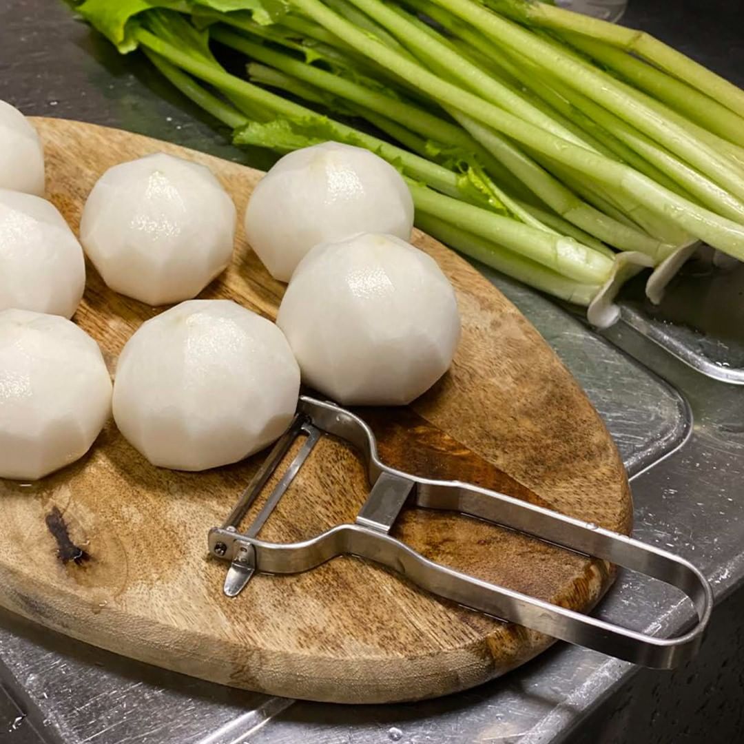 気持ち良く剥けるステンレスの皮引き、ソーラー電池だけでも動くスケール、くるくる回して合わせるタイマー、いろんな食器が収まったワイヤーバスケット。
