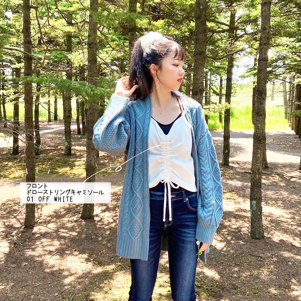 クシュっと、ドローストリングがCUTEな #フロントドローストリングキャミソール ✨レイヤードしても、トップスとしても可愛い #フロントボタンビスチェ 👌トレンドライクなアイテムだから❤️手持ちのアイテムに合わせるだけで、可愛くて、happyな着こなしになりますね😘イケてる夏トップス🙌
