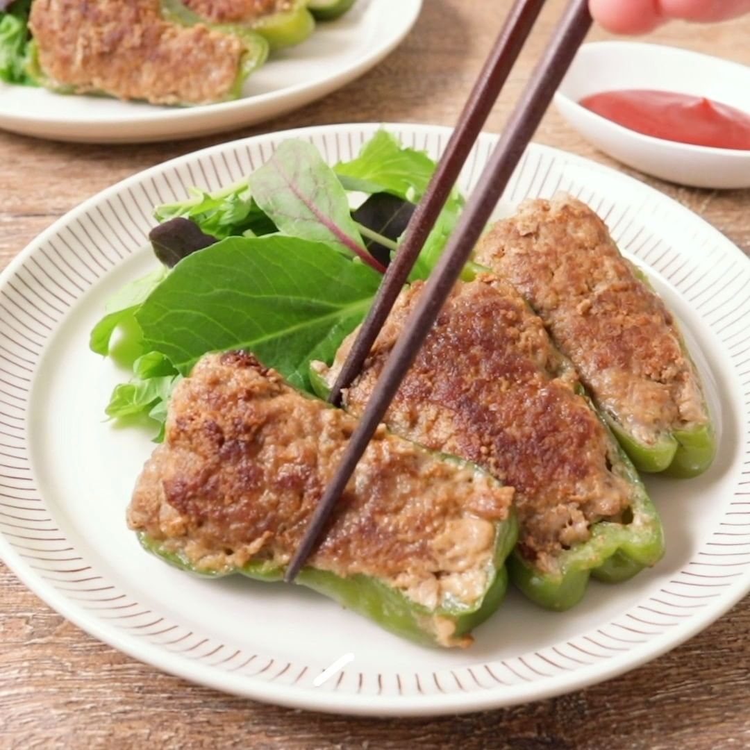⑧詰めて簡単!ピーマンの肉詰め