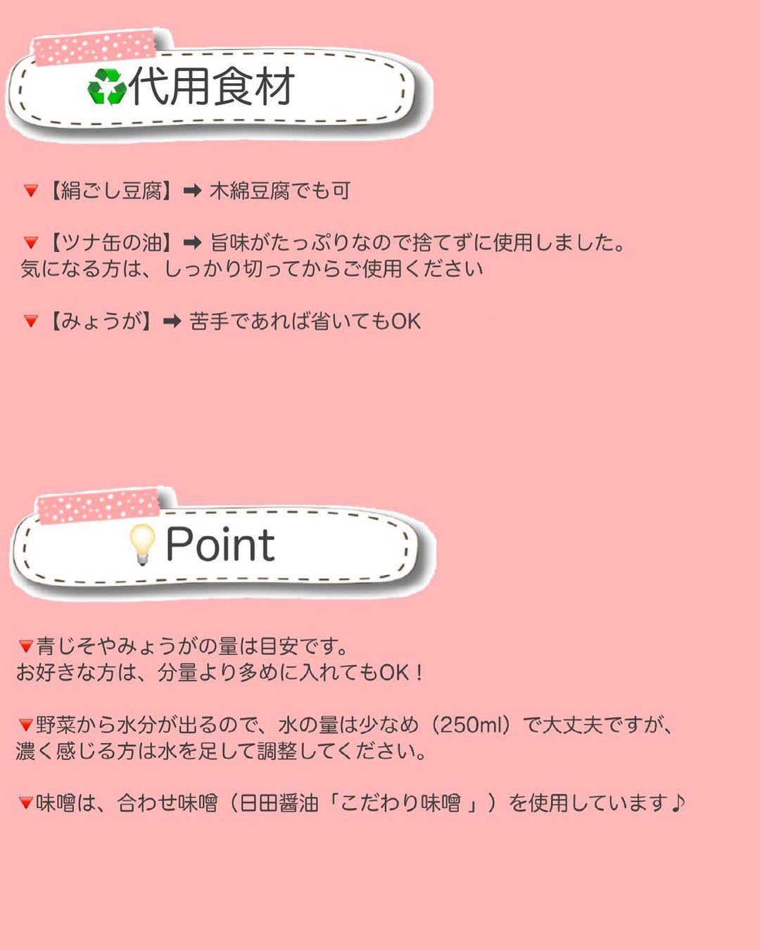 ♻️ 代 用 食 材 / 調 味 料 / P o i n t ♻️