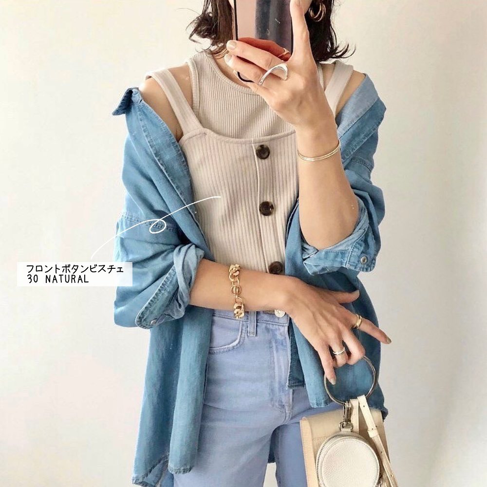 今夏☺️レイヤードするなら #フロントボタンビスチェ がオススメ✨季節を彩る重ね着を、さらにお洒落見えさせてくれるビスチェが😉きっと、着こなしを高めてくれるはず 💕 軽めの素材感で、涼しげにキマるのもGOOD✨大人っぽく着こなすのも、素敵ですね🌟合わせ方自由自在❤️トレンドアイテムのビスチェで、オシャレを楽しめそうですね👏