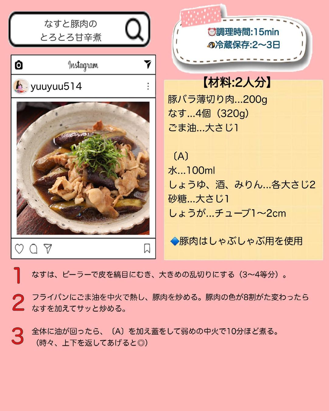 𓎩 #なすと豚肉のとろとろ甘辛煮