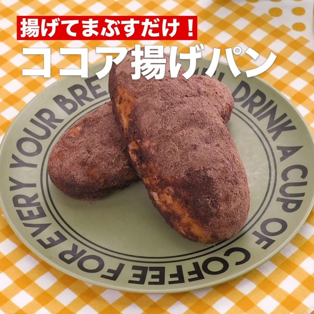 材料2つでできる、ココア揚げパンのご紹介です。スタンダードな揚げパンをココア味にアレンジ♪ミルクココアパウダーを使うことで味付けも簡単になります♪午後のティータイムにいかがですか?