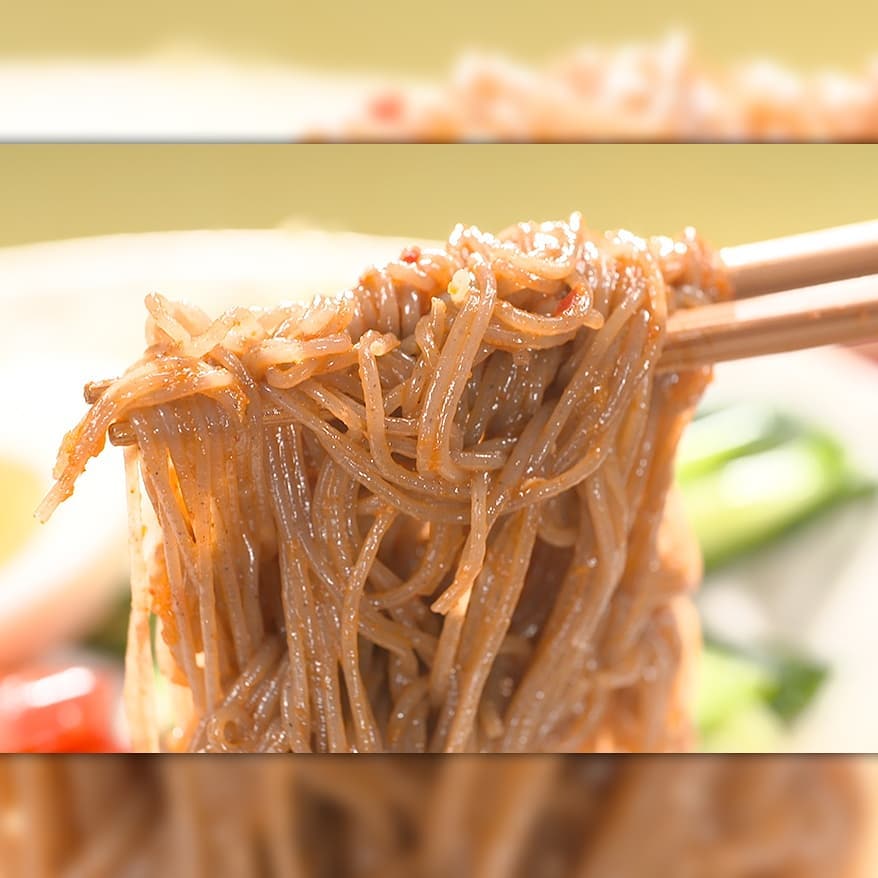 ⑤市販のビビン麺を茹で、氷水でしめる