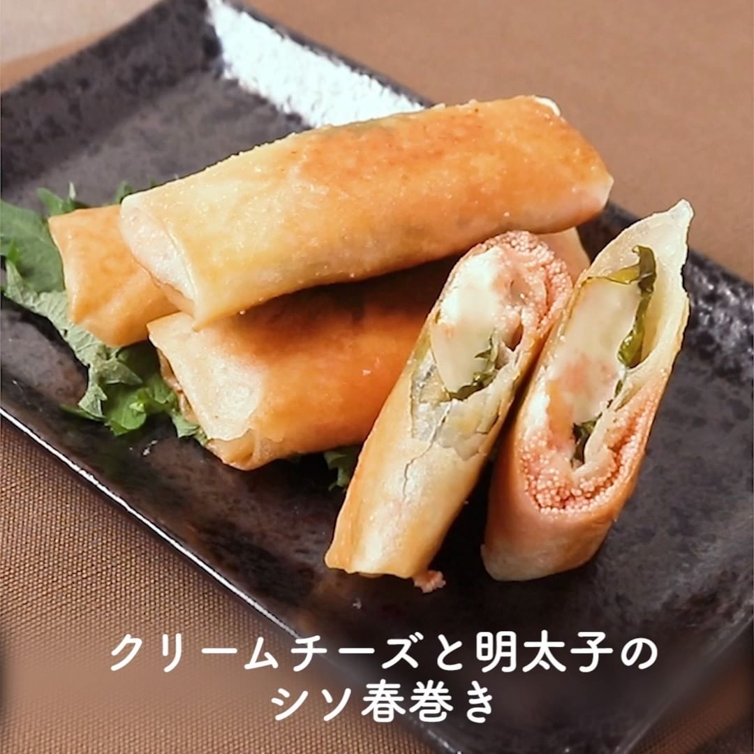 ⑤クリームチーズと明太子のシソ春巻き