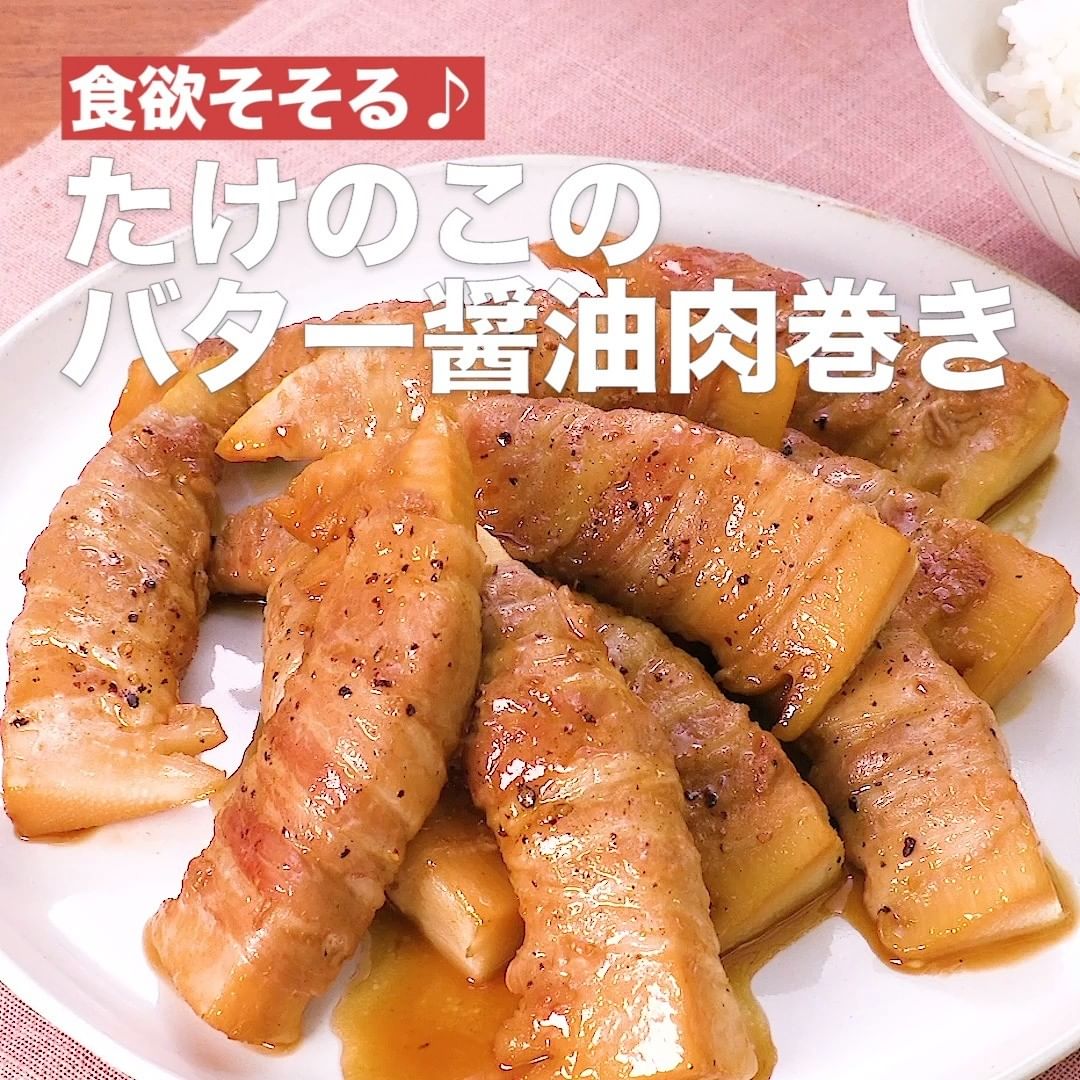 たけのこの食感が楽しい肉巻きレシピのご紹介です♪豚バラ肉のこってりとした味わいとバターのコクが、たけのこと相性抜群!ご飯のおかずはもちろん、お酒のおつまみにもおすすめです!