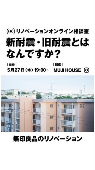 @MUJI HOUSE 無印良品の家 MUJI無印良品の家: みなさんの住宅購入・中古マンション・リノベーションのさまざまな疑問・質問に、趣味=中古マンションの“こっしー”がお答えする「リノベーションオンライン相談室」。 … 2021-05-27 みなさんの住宅購入・中古マンション・リノベーションのさまざまな疑問・質問に、趣味=中古マンションの“こっしー”がお答えする「リノベーションオンライン相談室」。 今回は「新耐震・旧耐震とはなんですか?」をテーマに語ります。 残りの時間は皆さんからの質問に “こっしー”がお答えします。 コラム「リノベーションなんでも相談室」もどうぞ。https://house.muji.com/life/clmn/renov_nandemo Ciao, Nihon.