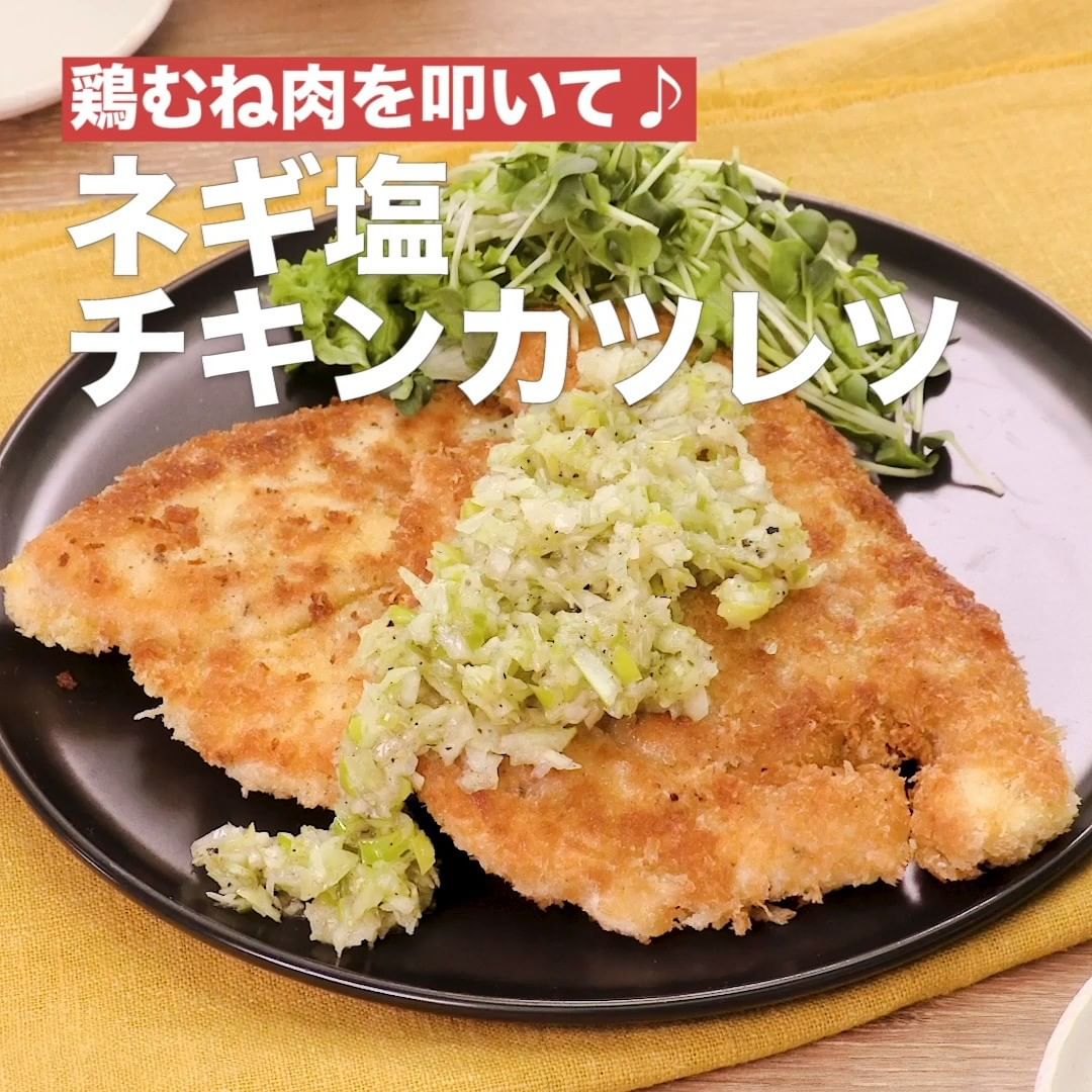 ②<鶏むね肉を叩いて♪ネギ塩チキンカツレツ>