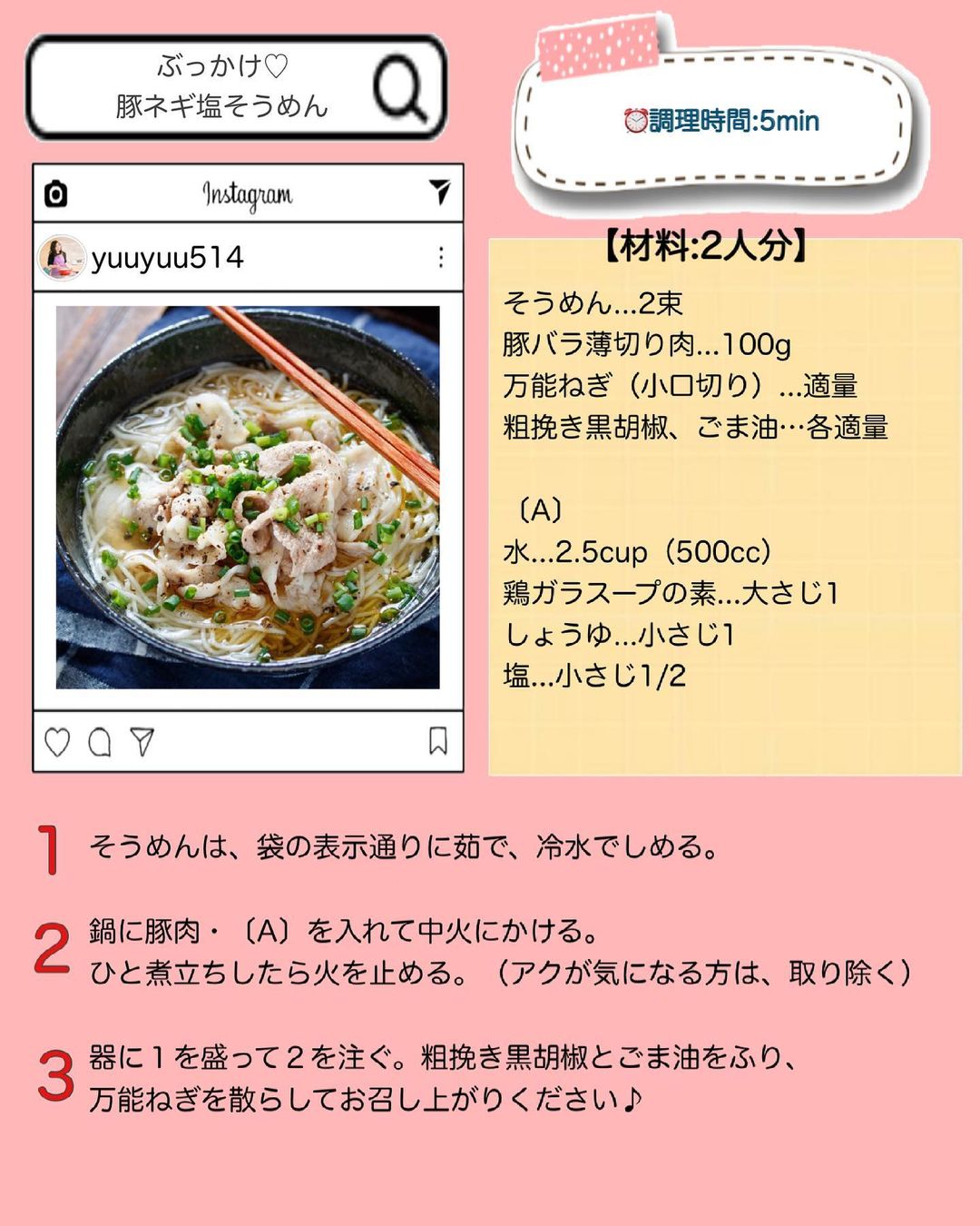 ➊ごま油香る♪ぶっかけ♡豚ネギ塩そうめん